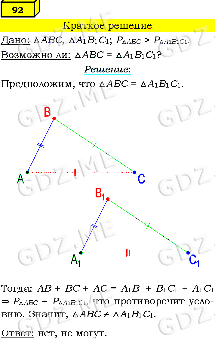Подробный вариант решения из решебника (ГДЗ): Номер номер 92 (НОМЕРА РЕШЕНИЙ) по предмету Геометрия, за 7 класс, авторы учебника Л.С. Атанасян, В. Ф. Бутузов, С. Б. Кадомцев.