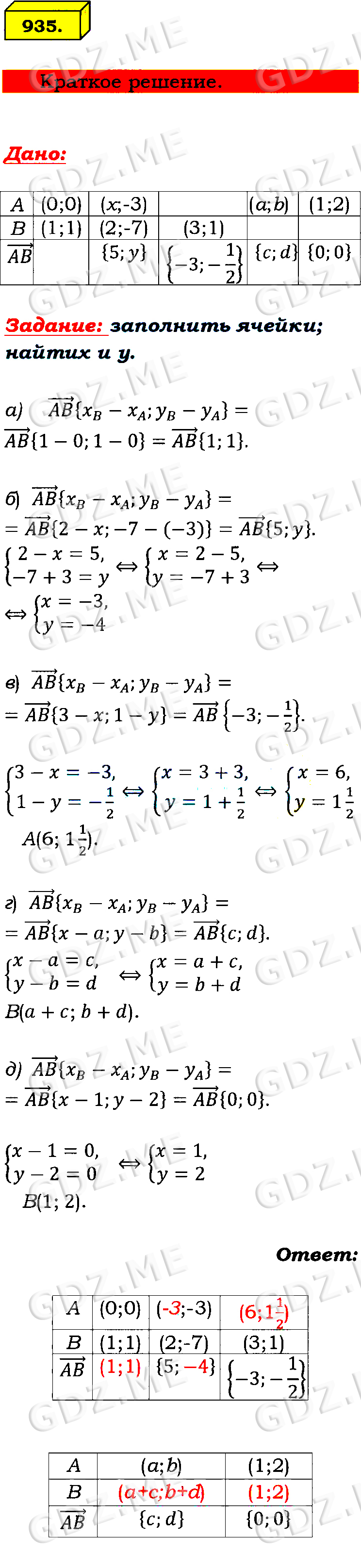 Подробный вариант решения из решебника (ГДЗ): Номер номер 935 (НОМЕРА РЕШЕНИЙ) по предмету Геометрия, за 7 класс, авторы учебника Л.С. Атанасян, В. Ф. Бутузов, С. Б. Кадомцев.