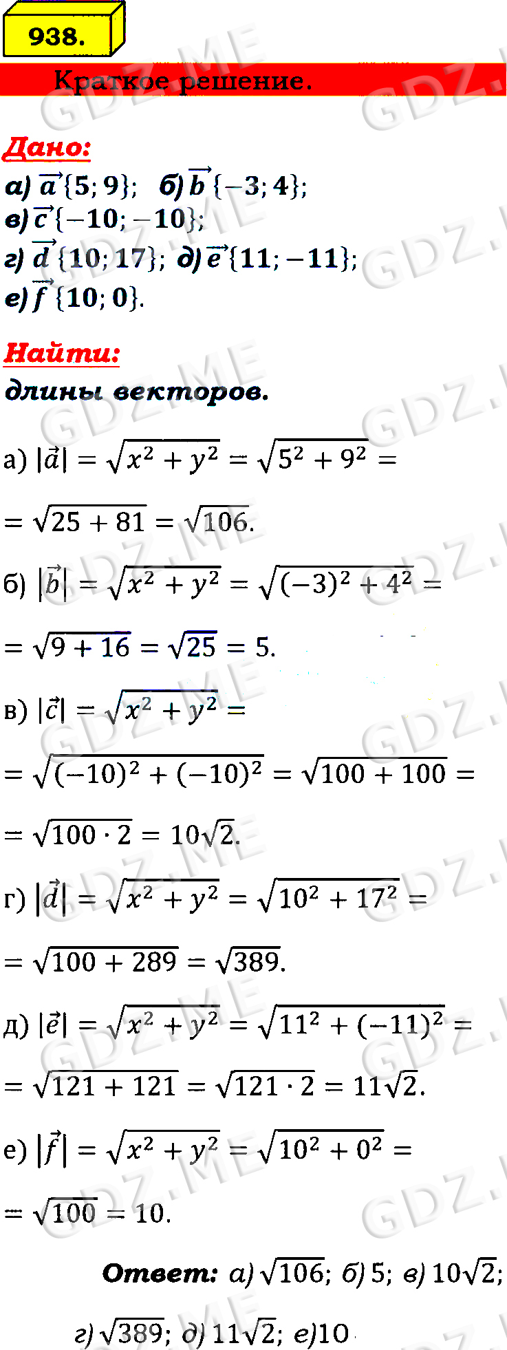 ГДЗ по Геометрии 7-9 класс: Атанасян Л.С. 2013 год.. Ответ на Номер номер 938 (НОМЕРА РЕШЕНИЙ)