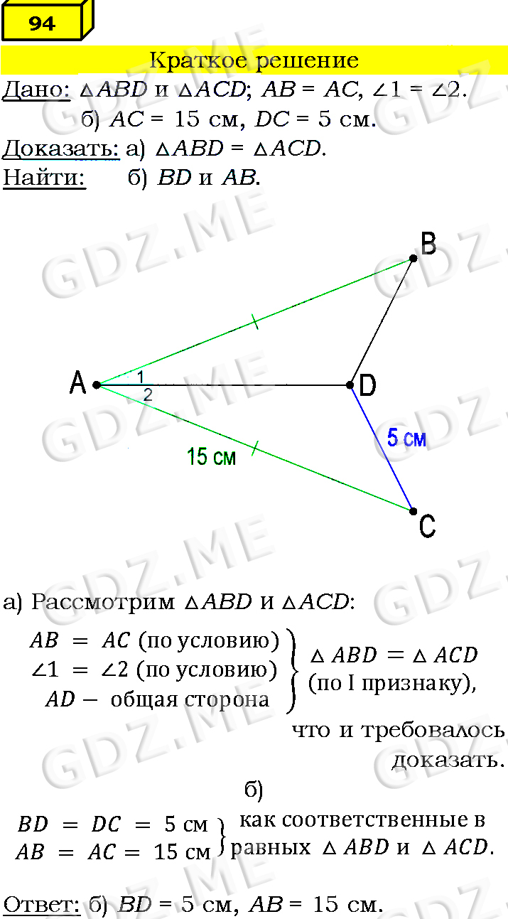 Подробный вариант решения из решебника (ГДЗ): Номер номер 94 (НОМЕРА РЕШЕНИЙ) по предмету Геометрия, за 7 класс, авторы учебника Л.С. Атанасян, В. Ф. Бутузов, С. Б. Кадомцев.