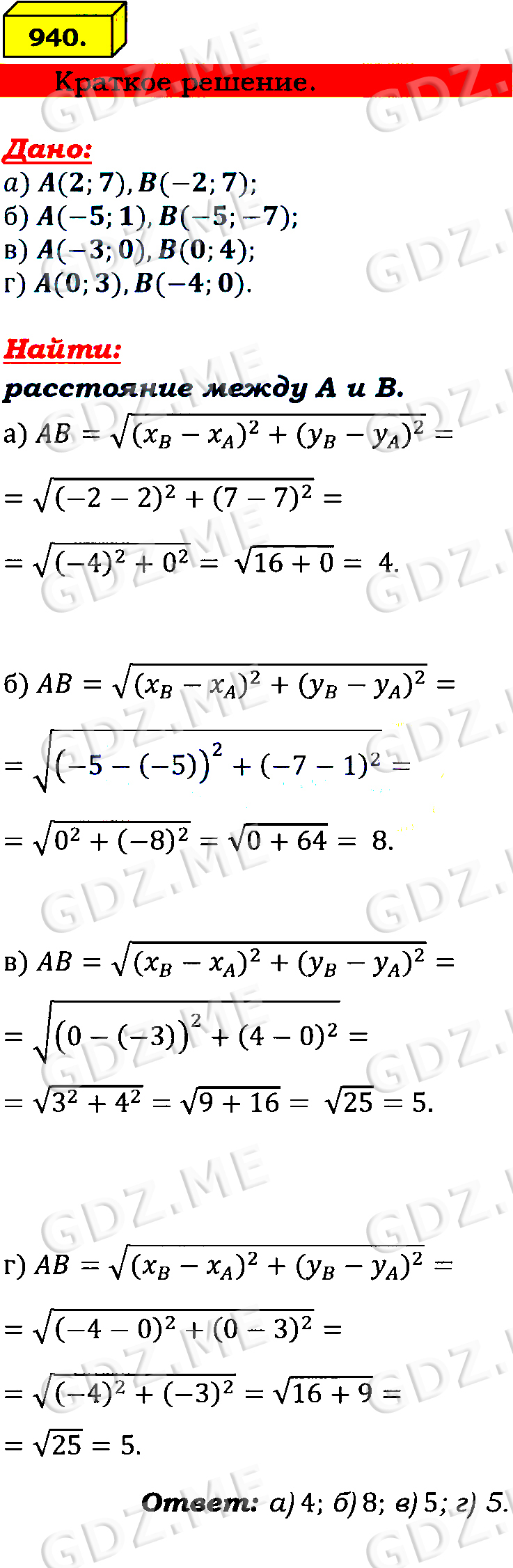 Подробный вариант решения из решебника (ГДЗ): Номер номер 940 (НОМЕРА РЕШЕНИЙ) по предмету Геометрия, за 7 класс, авторы учебника Л.С. Атанасян, В. Ф. Бутузов, С. Б. Кадомцев.