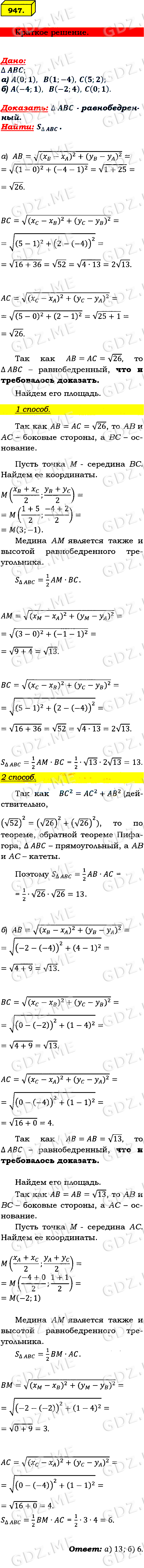 ГДЗ по Геометрии 7-9 класс: Атанасян Л.С. 2013 год.. Ответ на Номер номер 947 (НОМЕРА РЕШЕНИЙ)