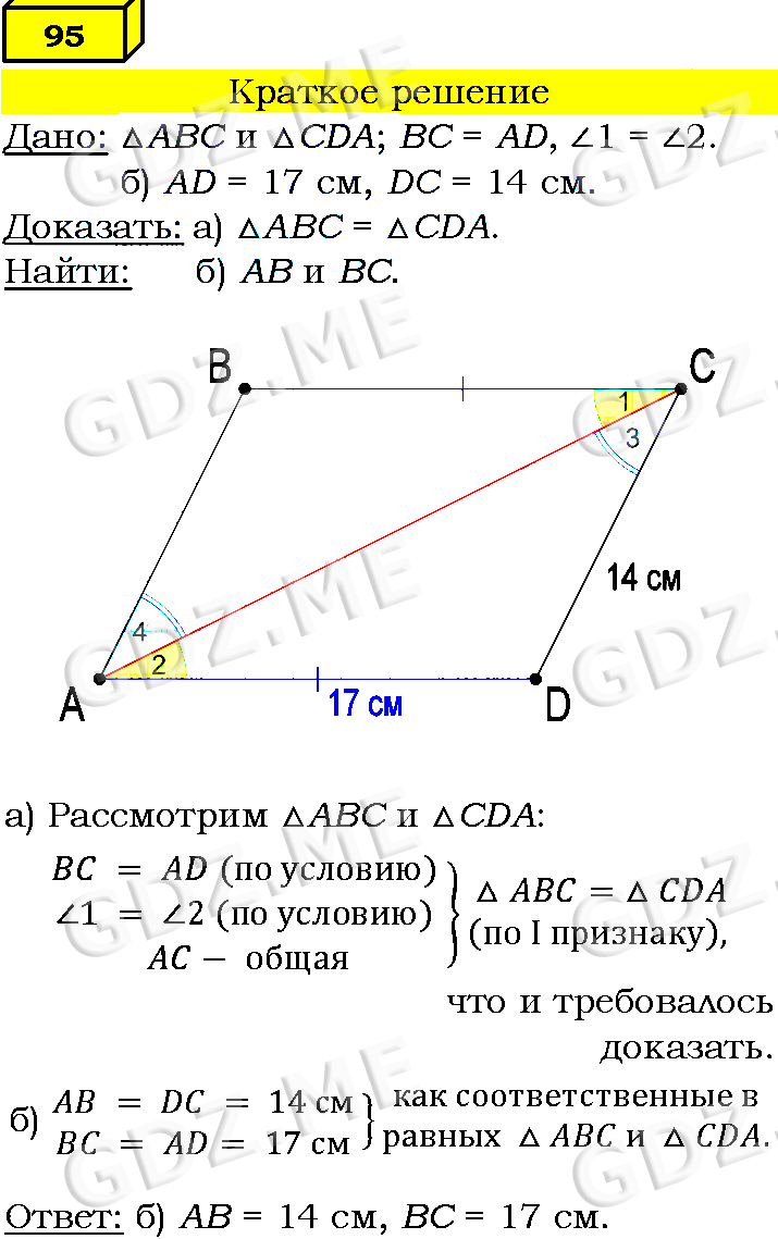 Подробный вариант решения из решебника (ГДЗ): Номер номер 95 (НОМЕРА РЕШЕНИЙ) по предмету Геометрия, за 7 класс, авторы учебника Л.С. Атанасян, В. Ф. Бутузов, С. Б. Кадомцев.