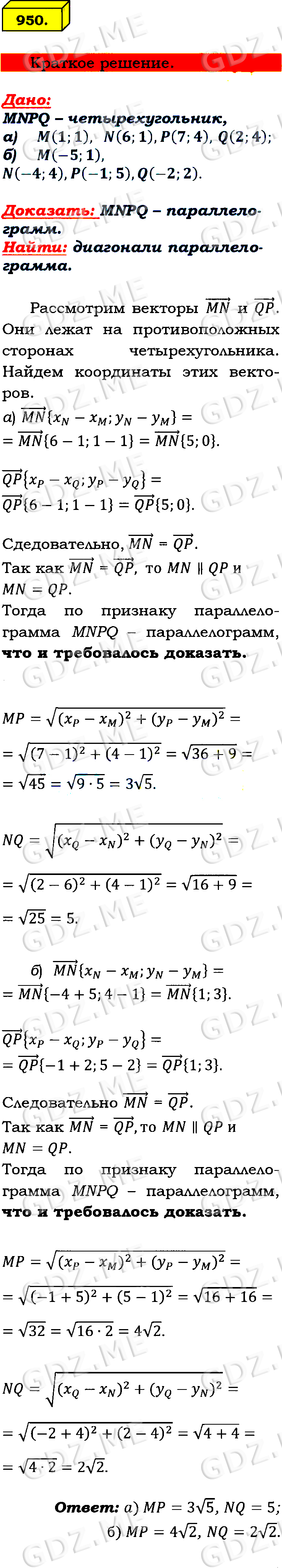 Подробный вариант решения из решебника (ГДЗ): Номер номер 950 (НОМЕРА РЕШЕНИЙ) по предмету Геометрия, за 7 класс, авторы учебника Л.С. Атанасян, В. Ф. Бутузов, С. Б. Кадомцев.