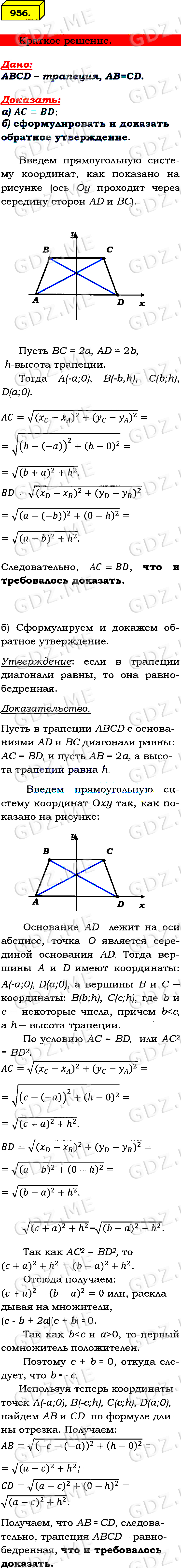 ГДЗ по Геометрии 7-9 класс: Атанасян Л.С. 2013 год.. Ответ на Номер номер 956 (НОМЕРА РЕШЕНИЙ)