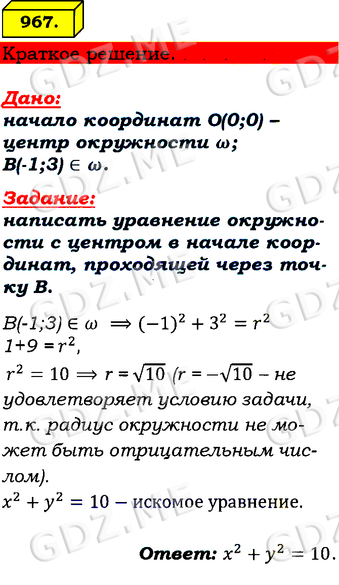 ГДЗ по Геометрии 7-9 класс: Атанасян Л.С. 2013 год.. Ответ на Номер номер 967 (НОМЕРА РЕШЕНИЙ)