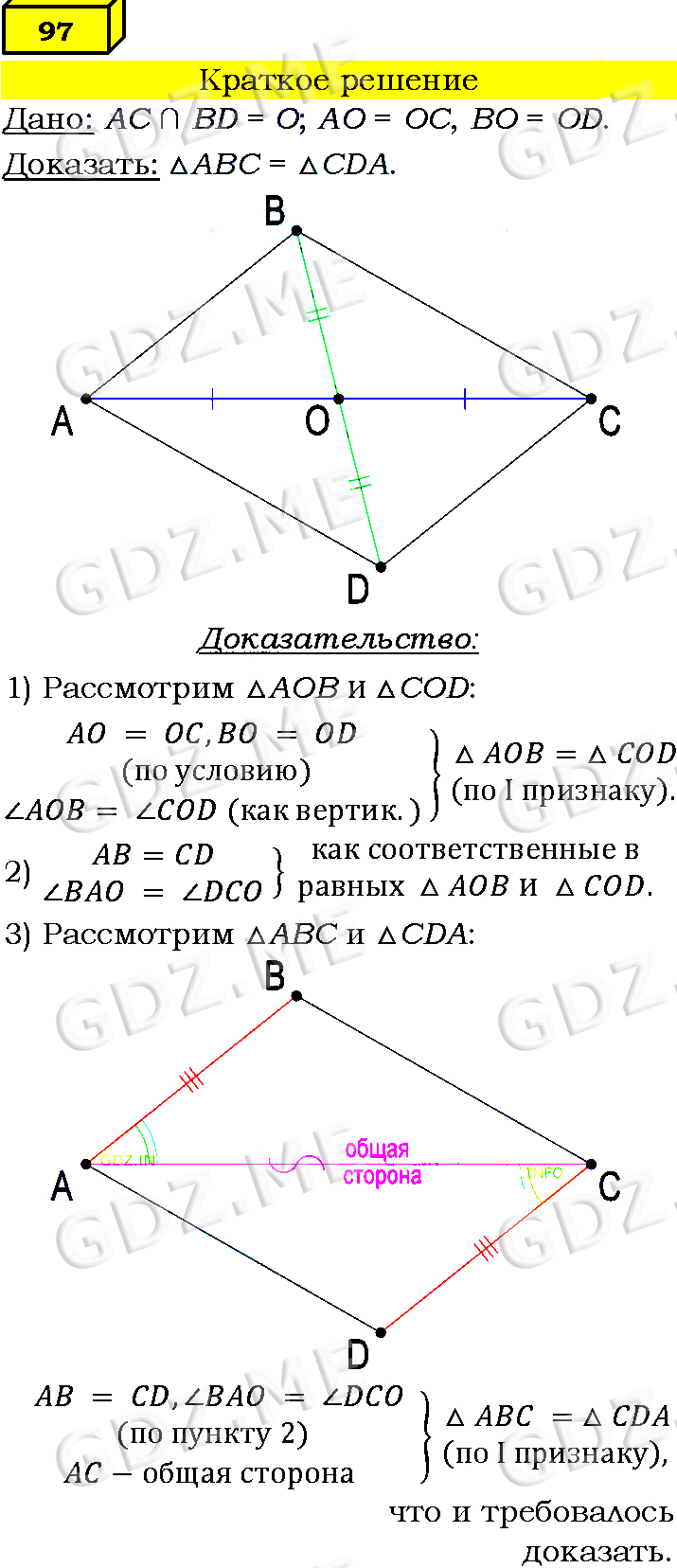 Подробный вариант решения из решебника (ГДЗ): Номер номер 97 (НОМЕРА РЕШЕНИЙ) по предмету Геометрия, за 7 класс, авторы учебника Л.С. Атанасян, В. Ф. Бутузов, С. Б. Кадомцев.