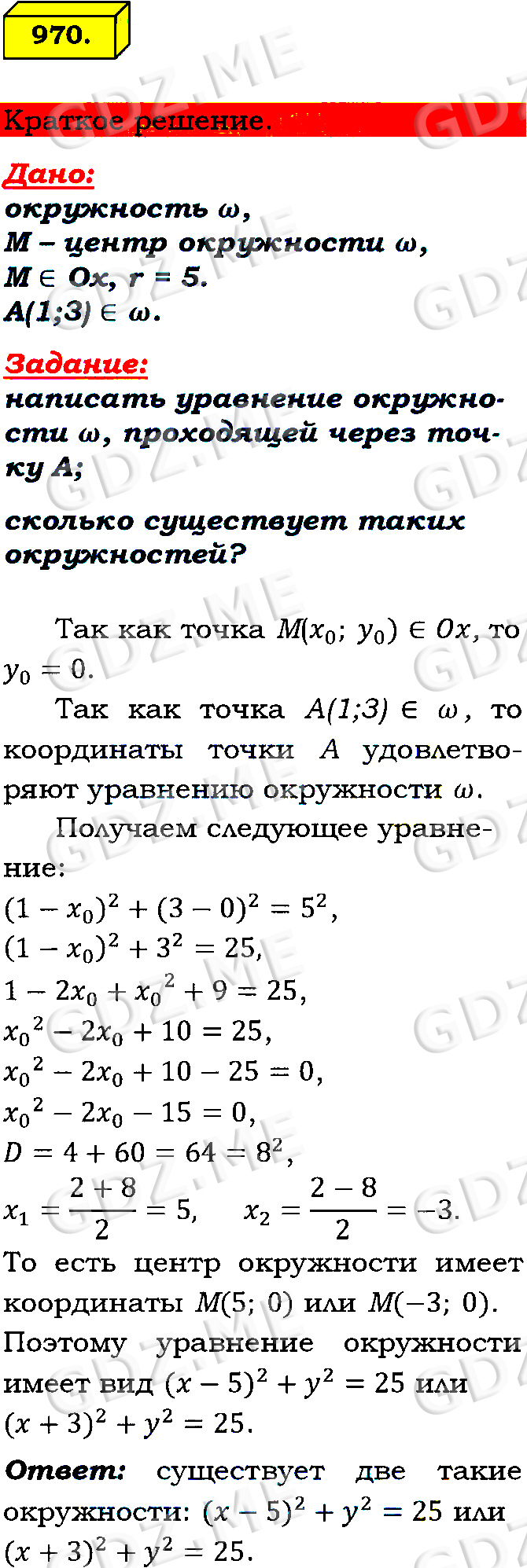 ГДЗ по Геометрии 7-9 класс: Атанасян Л.С. 2013 год.. Ответ на Номер номер 970 (НОМЕРА РЕШЕНИЙ)