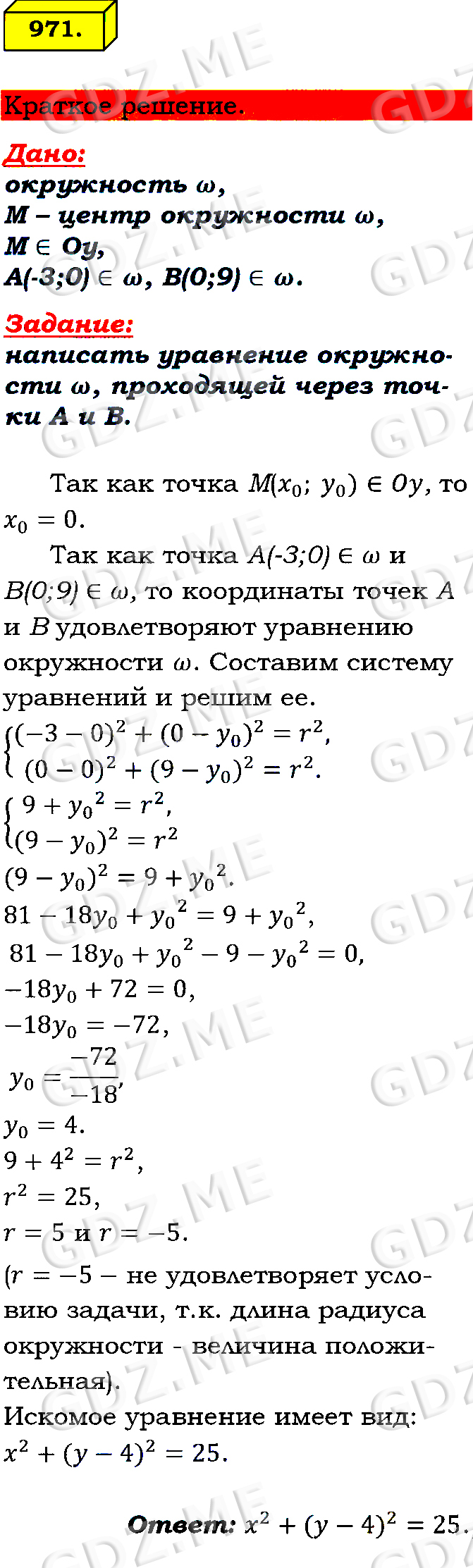 ГДЗ по Геометрии 7-9 класс: Атанасян Л.С. 2013 год.. Ответ на Номер номер 971 (НОМЕРА РЕШЕНИЙ)