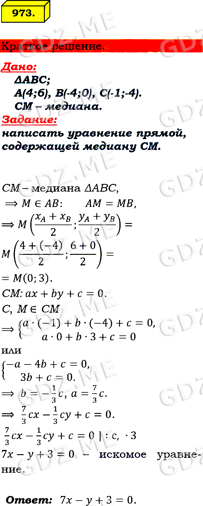 Подробный вариант решения из решебника (ГДЗ): Номер номер 973 (НОМЕРА РЕШЕНИЙ) по предмету Геометрия, за 7 класс, авторы учебника Л.С. Атанасян, В. Ф. Бутузов, С. Б. Кадомцев.
