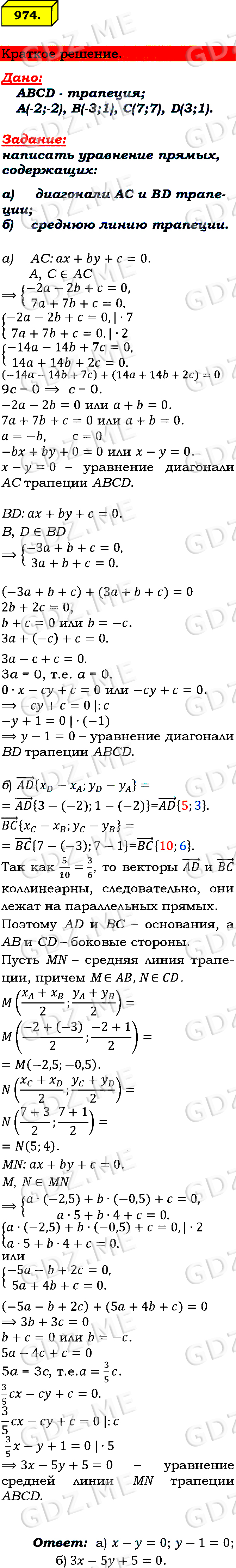 Подробный вариант решения из решебника (ГДЗ): Номер номер 974 (НОМЕРА РЕШЕНИЙ) по предмету Геометрия, за 7 класс, авторы учебника Л.С. Атанасян, В. Ф. Бутузов, С. Б. Кадомцев.