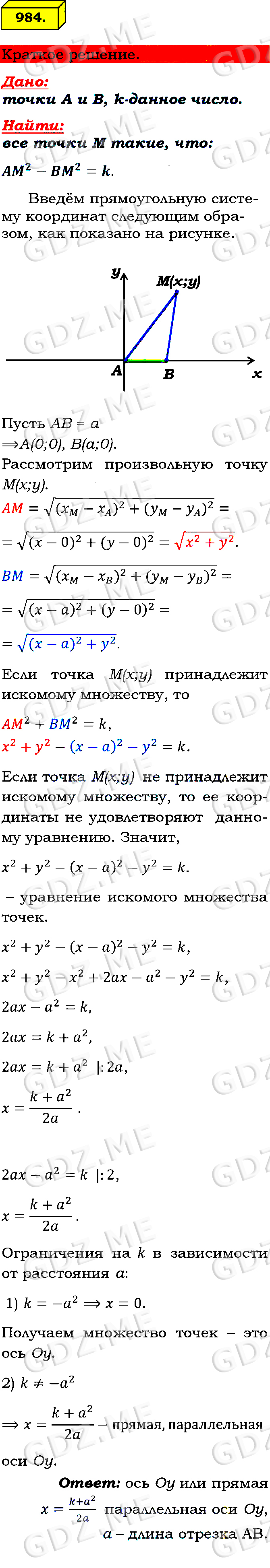 Подробный вариант решения из решебника (ГДЗ): Номер номер 984 (НОМЕРА РЕШЕНИЙ) по предмету Геометрия, за 7 класс, авторы учебника Л.С. Атанасян, В. Ф. Бутузов, С. Б. Кадомцев.
