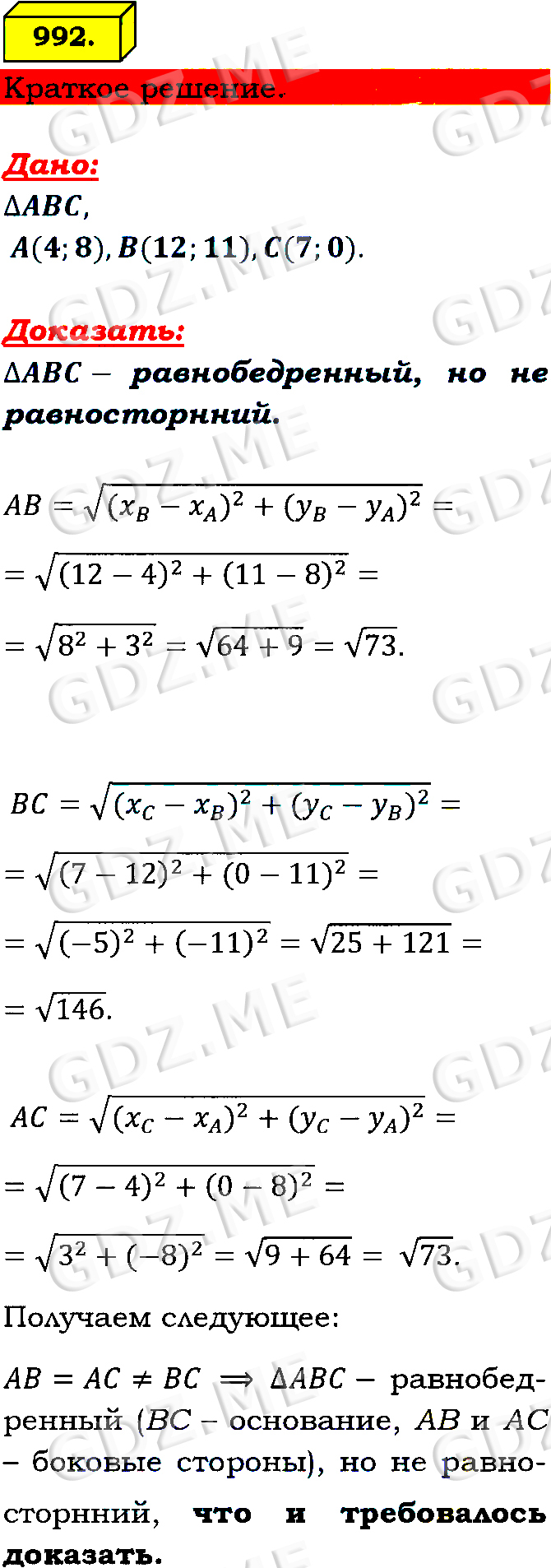 Подробный вариант решения из решебника (ГДЗ): Номер номер 992 (НОМЕРА РЕШЕНИЙ) по предмету Геометрия, за 7 класс, авторы учебника Л.С. Атанасян, В. Ф. Бутузов, С. Б. Кадомцев.