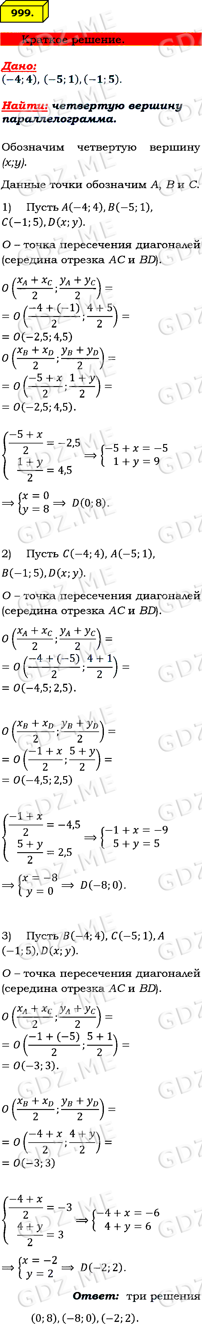 ГДЗ по Геометрии 7-9 класс: Атанасян Л.С. 2013 год.. Ответ на Номер номер 999 (НОМЕРА РЕШЕНИЙ)
