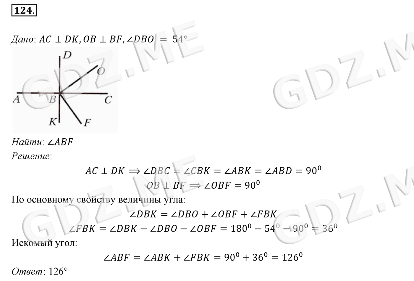 Подробный вариант решения из решебника (ГДЗ): Задание номер 124 (Глава 1 Простейшие геометрические фигуры и их свойства) по предмету Геометрия, за 7 класс, авторы учебника Мерзляк, Полонский, Якир.