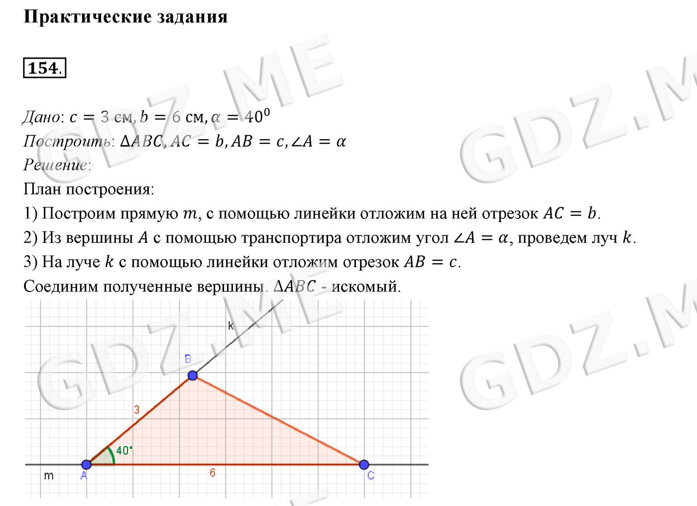 Подробный вариант решения из решебника (ГДЗ): Задание номер 154 (Глава 2 Треугольники) по предмету Геометрия, за 7 класс, авторы учебника Мерзляк, Полонский, Якир.