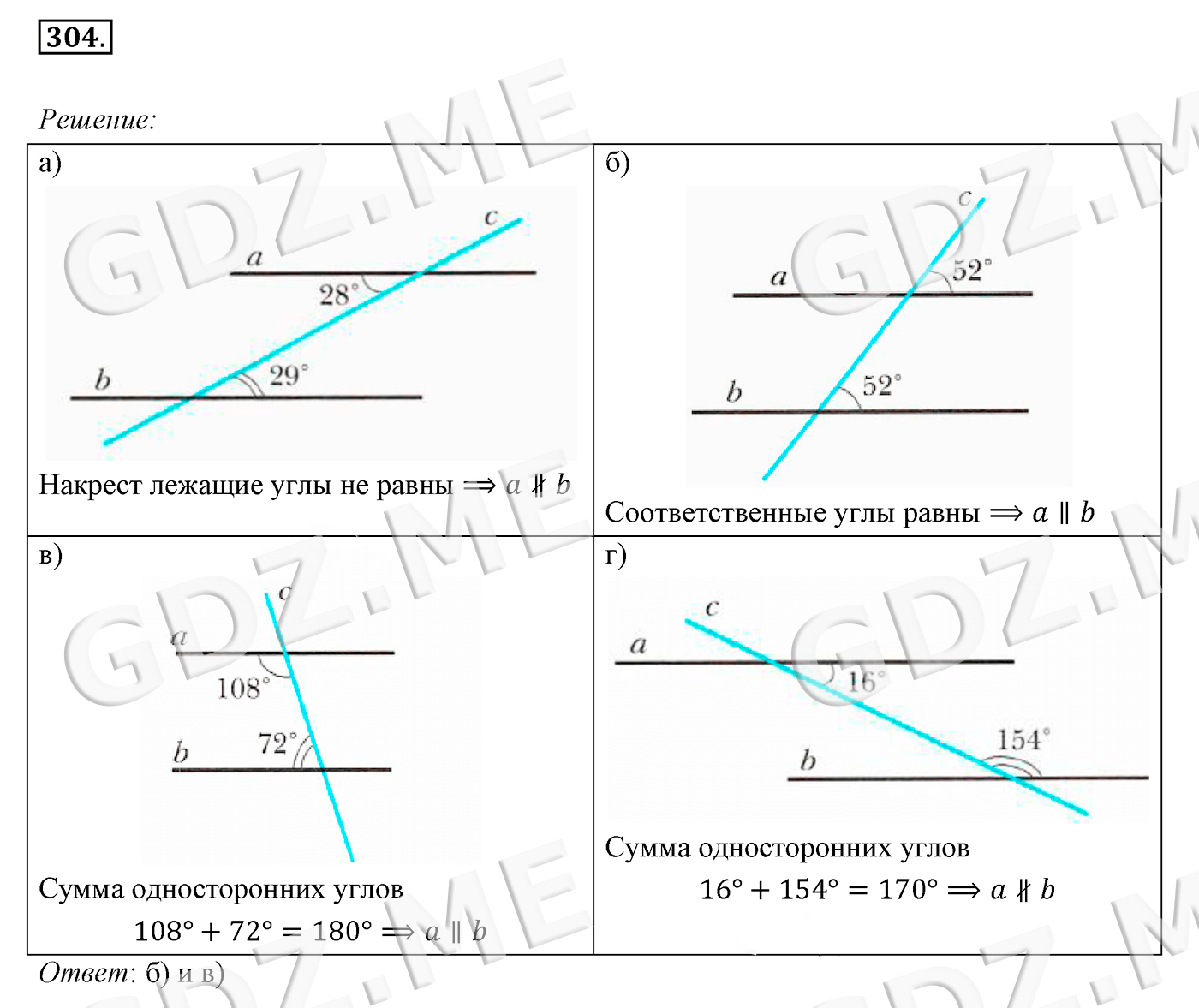 Подробный вариант решения из решебника (ГДЗ): Задание номер 304 (Глава 3 Параллельные прямые. Сумма углов треугольника) по предмету Геометрия, за 7 класс, авторы учебника Мерзляк, Полонский, Якир.