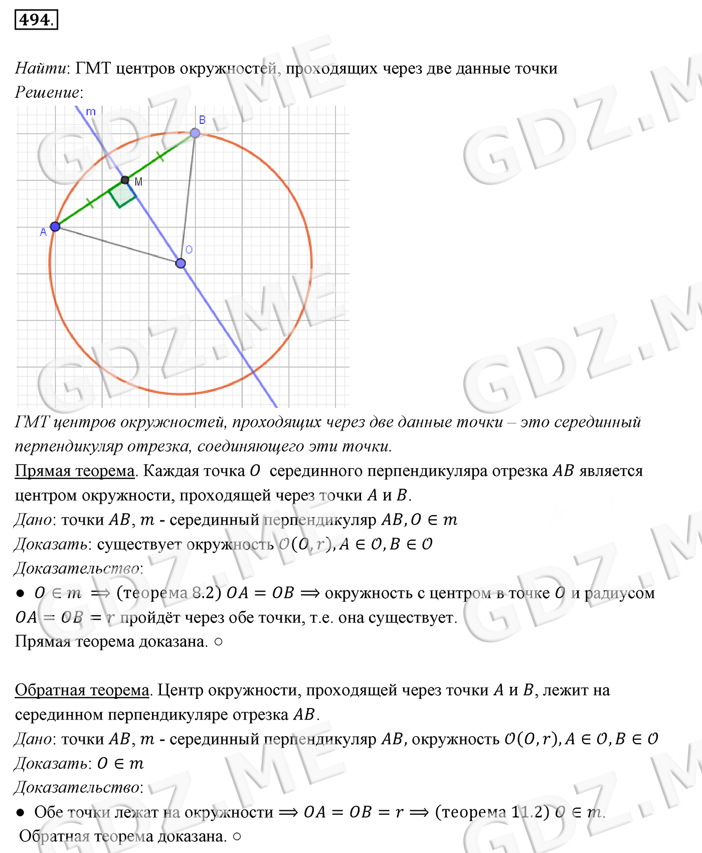 Подробный вариант решения из решебника (ГДЗ): Задание номер 494 (Глава 4 Окружность и круг. Геометрические построения) по предмету Геометрия, за 7 класс, авторы учебника Мерзляк, Полонский, Якир.