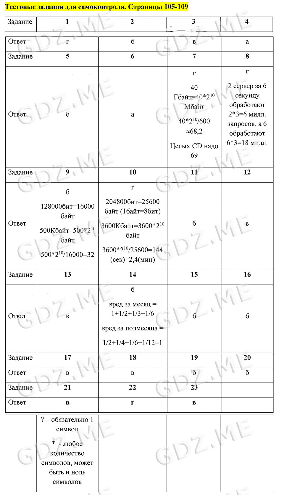 Подробный вариант решения из решебника (ГДЗ): Задание номер 105.109.test (Cтраницы 105-109) по предмету Информатика, за 7 класс, авторы учебника Босова.