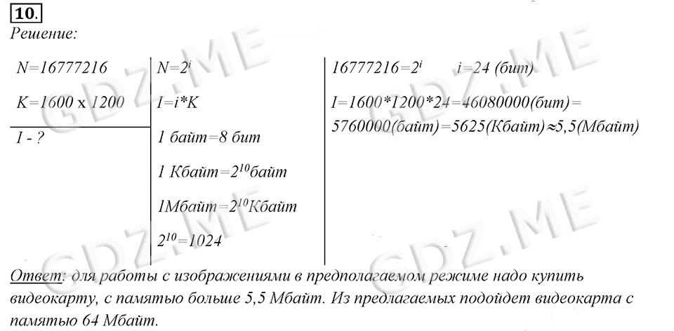 Подробный вариант решения из решебника (ГДЗ): Задание номер 10 (§3.1. Формирование изображения на экране монитора. Cтраницы 110-115) по предмету Информатика, за 7 класс, авторы учебника Босова.