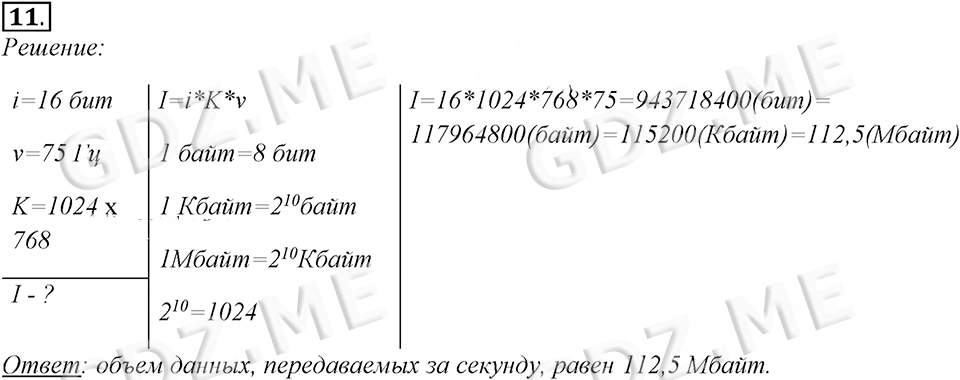 Подробный вариант решения из решебника (ГДЗ): Задание номер 11 (§3.1. Формирование изображения на экране монитора. Cтраницы 110-115) по предмету Информатика, за 7 класс, авторы учебника Босова.