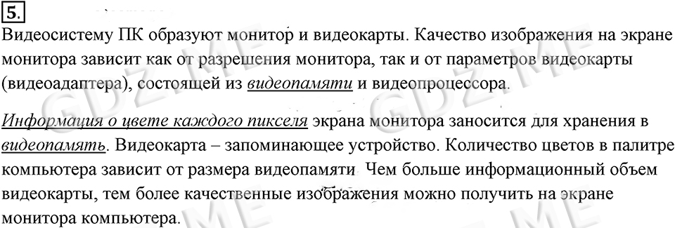Подробный вариант решения из решебника (ГДЗ): Задание номер 5 (§3.1. Формирование изображения на экране монитора. Cтраницы 110-115) по предмету Информатика, за 7 класс, авторы учебника Босова.