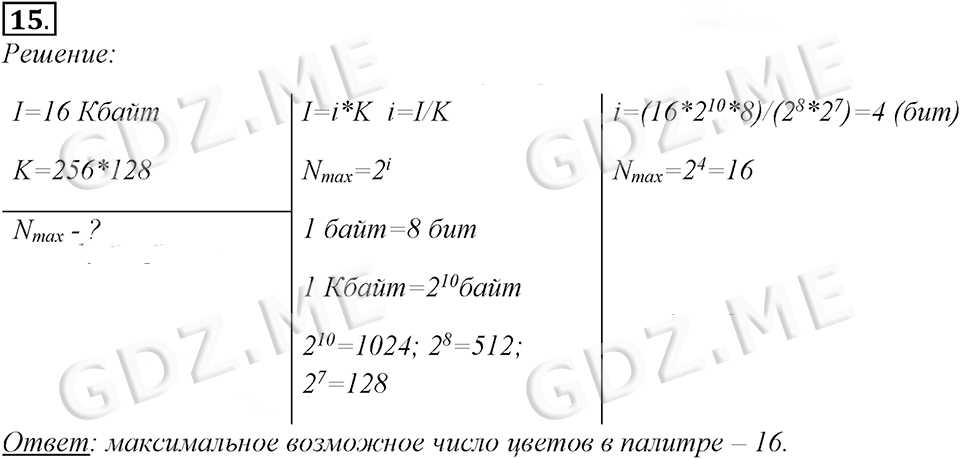 Подробный вариант решения из решебника (ГДЗ): Задание номер 15 (§3.2. Компьютерная графика. Cтраницы 116-126) по предмету Информатика, за 7 класс, авторы учебника Босова.