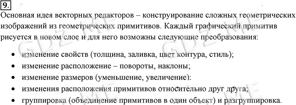 Подробный вариант решения из решебника (ГДЗ): Задание номер 9 (§3.3. Создание графических изображений. Cтраницы 127-138) по предмету Информатика, за 7 класс, авторы учебника Босова.