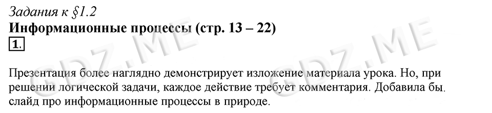 Подробный вариант решения из решебника (ГДЗ): Задание номер 1 (§1.2. Информационные процессы. Cтраницы 13-22) по предмету Информатика, за 7 класс, авторы учебника Босова.