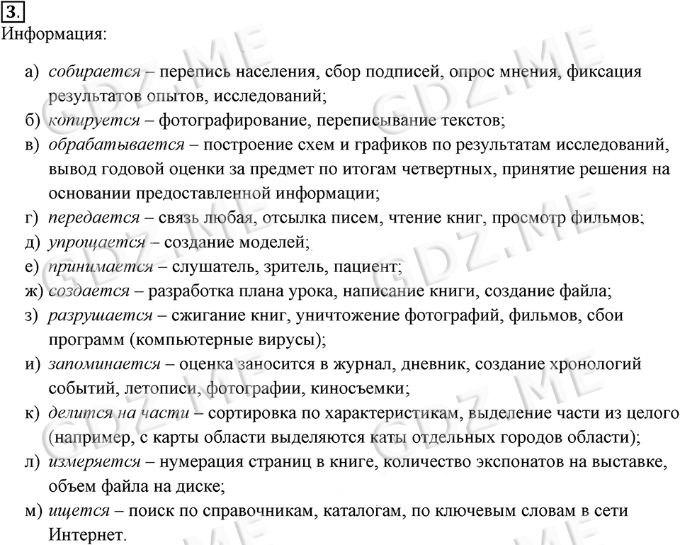 Подробный вариант решения из решебника (ГДЗ): Задание номер 3 (§1.2. Информационные процессы. Cтраницы 13-22) по предмету Информатика, за 7 класс, авторы учебника Босова.