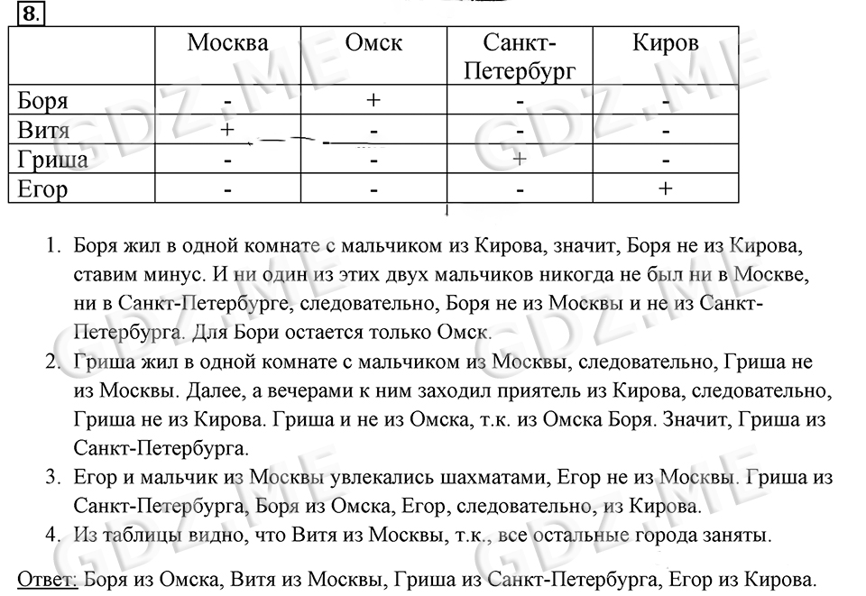 Подробный вариант решения из решебника (ГДЗ): Задание номер 8 (§1.2. Информационные процессы. Cтраницы 13-22) по предмету Информатика, за 7 класс, авторы учебника Босова.
