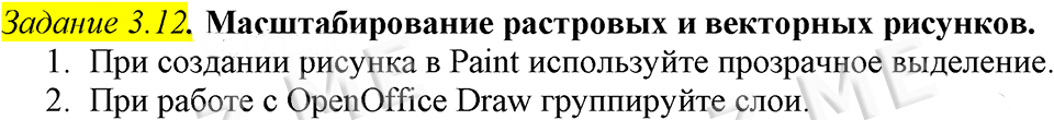 Подробный вариант решения из решебника (ГДЗ): Задание номер 3.12 (Задания для практических работ. Cтраница 139) по предмету Информатика, за 7 класс, авторы учебника Босова.