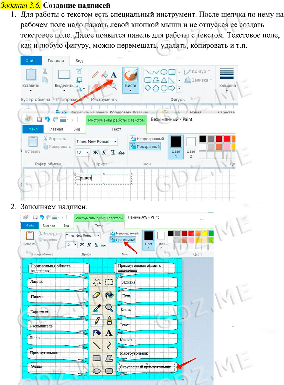 Подробный вариант решения из решебника (ГДЗ): Задание номер 3.6 (Задания для практических работ. Cтраница 139) по предмету Информатика, за 7 класс, авторы учебника Босова.