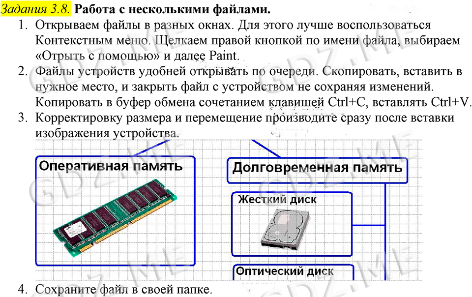 Подробный вариант решения из решебника (ГДЗ): Задание номер 3.8 (Задания для практических работ. Cтраница 139) по предмету Информатика, за 7 класс, авторы учебника Босова.