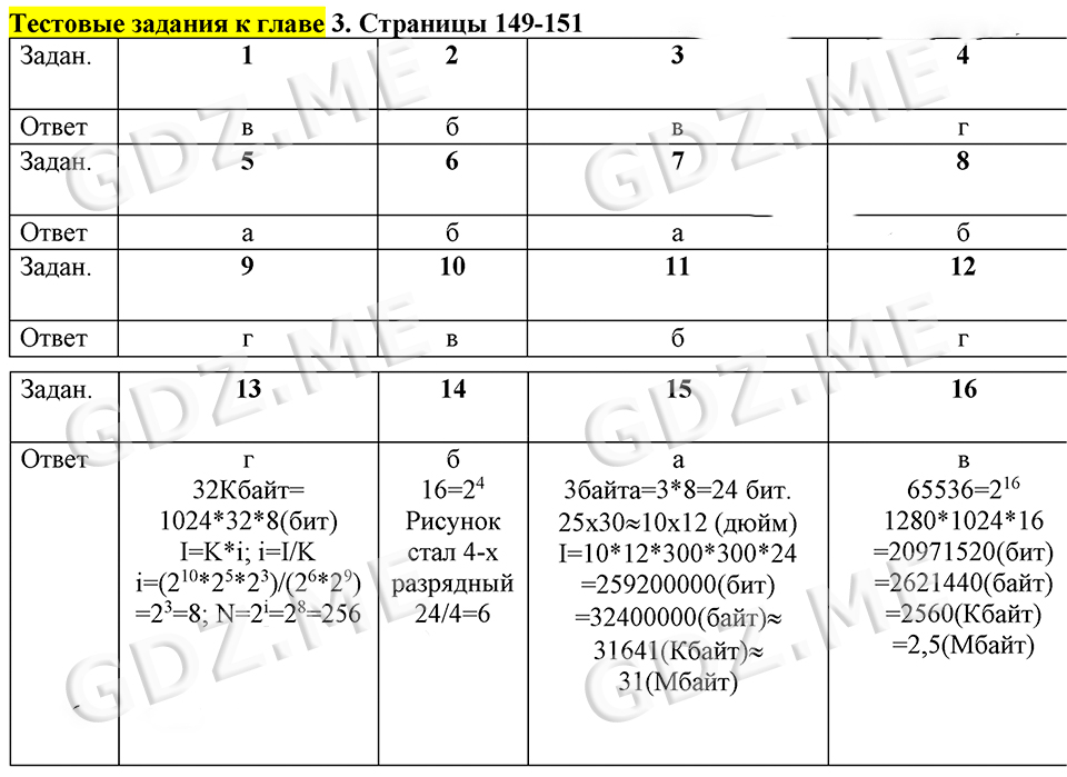 Подробный вариант решения из решебника (ГДЗ): Задание номер 149.151.test (Cтраницы 149-151) по предмету Информатика, за 7 класс, авторы учебника Босова.