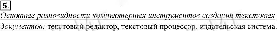 Подробный вариант решения из решебника (ГДЗ): Задание номер 5 (§4.1. Текстовые документы и технологии их создания. Cтраницы 152-158) по предмету Информатика, за 7 класс, авторы учебника Босова.