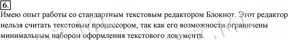 Подробный вариант решения из решебника (ГДЗ): Задание номер 6 (§4.1. Текстовые документы и технологии их создания. Cтраницы 152-158) по предмету Информатика, за 7 класс, авторы учебника Босова.