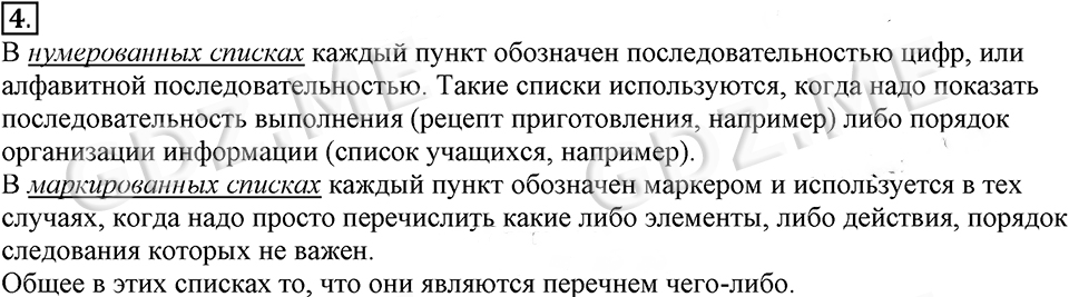 Подробный вариант решения из решебника (ГДЗ): Задание номер 4 (§4.4. Структурирование и визуализация информации в текстовых документах. Cтраницы 179-184) по предмету Информатика, за 7 класс, авторы учебника Босова.