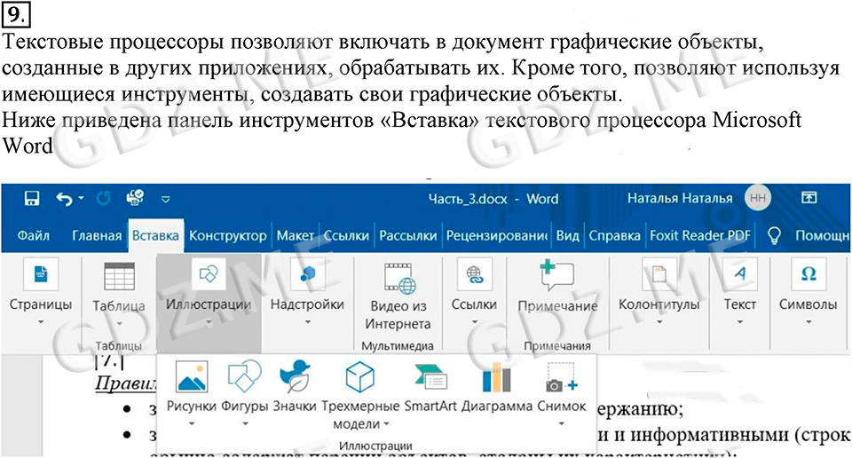Подробный вариант решения из решебника (ГДЗ): Задание номер 9 (§4.4. Структурирование и визуализация информации в текстовых документах. Cтраницы 179-184) по предмету Информатика, за 7 класс, авторы учебника Босова.