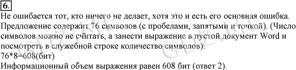 Подробный вариант решения из решебника (ГДЗ): Задание номер 6 (§4.6. Оценка количественных параметров текстовых документов. Cтраницы 190-196) по предмету Информатика, за 7 класс, авторы учебника Босова.