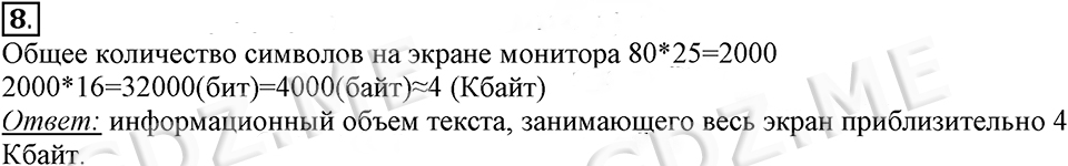 Подробный вариант решения из решебника (ГДЗ): Задание номер 8 (§4.6. Оценка количественных параметров текстовых документов. Cтраницы 190-196) по предмету Информатика, за 7 класс, авторы учебника Босова.