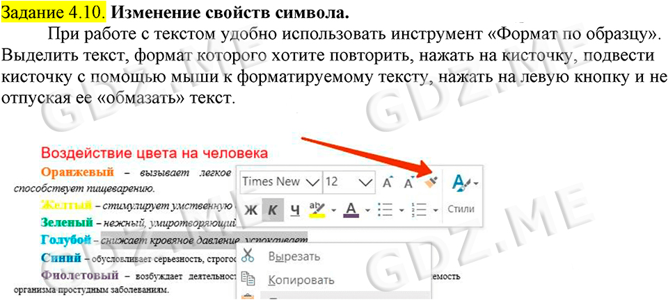 Подробный вариант решения из решебника (ГДЗ): Задание номер 4.10 (Задания для практических работ. Cтраница 197) по предмету Информатика, за 7 класс, авторы учебника Босова.