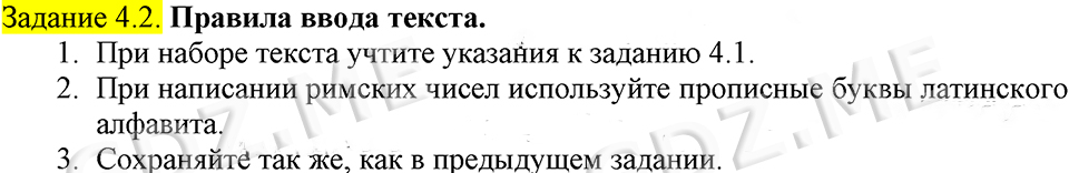 Подробный вариант решения из решебника (ГДЗ): Задание номер 4.2 (Задания для практических работ. Cтраница 197) по предмету Информатика, за 7 класс, авторы учебника Босова.