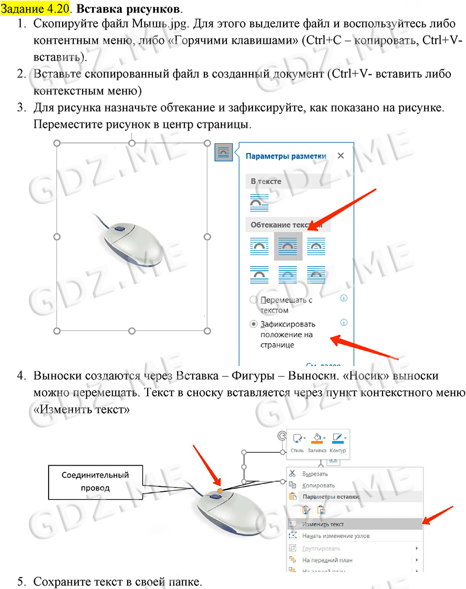 Подробный вариант решения из решебника (ГДЗ): Задание номер 4.20 (Задания для практических работ. Cтраница 197) по предмету Информатика, за 7 класс, авторы учебника Босова.
