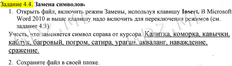 Подробный вариант решения из решебника (ГДЗ): Задание номер 4.4 (Задания для практических работ. Cтраница 197) по предмету Информатика, за 7 класс, авторы учебника Босова.