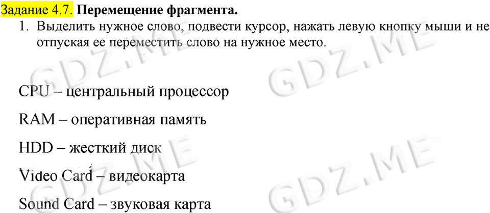 Подробный вариант решения из решебника (ГДЗ): Задание номер 4.7 (Задания для практических работ. Cтраница 197) по предмету Информатика, за 7 класс, авторы учебника Босова.