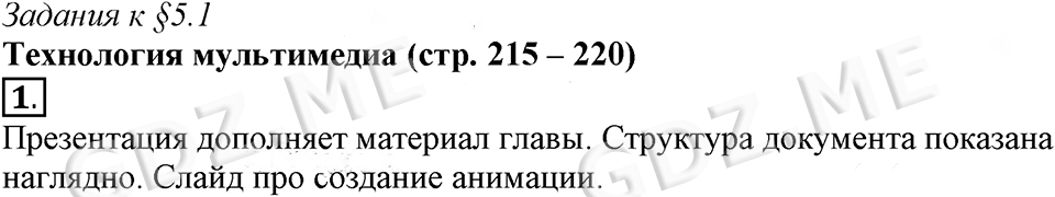 Подробный вариант решения из решебника (ГДЗ): Задание номер 1 (§5.1. Технология мультимедиа. Cтраницы 215-220) по предмету Информатика, за 7 класс, авторы учебника Босова.