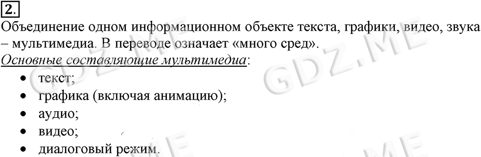 Подробный вариант решения из решебника (ГДЗ): Задание номер 2 (§5.1. Технология мультимедиа. Cтраницы 215-220) по предмету Информатика, за 7 класс, авторы учебника Босова.