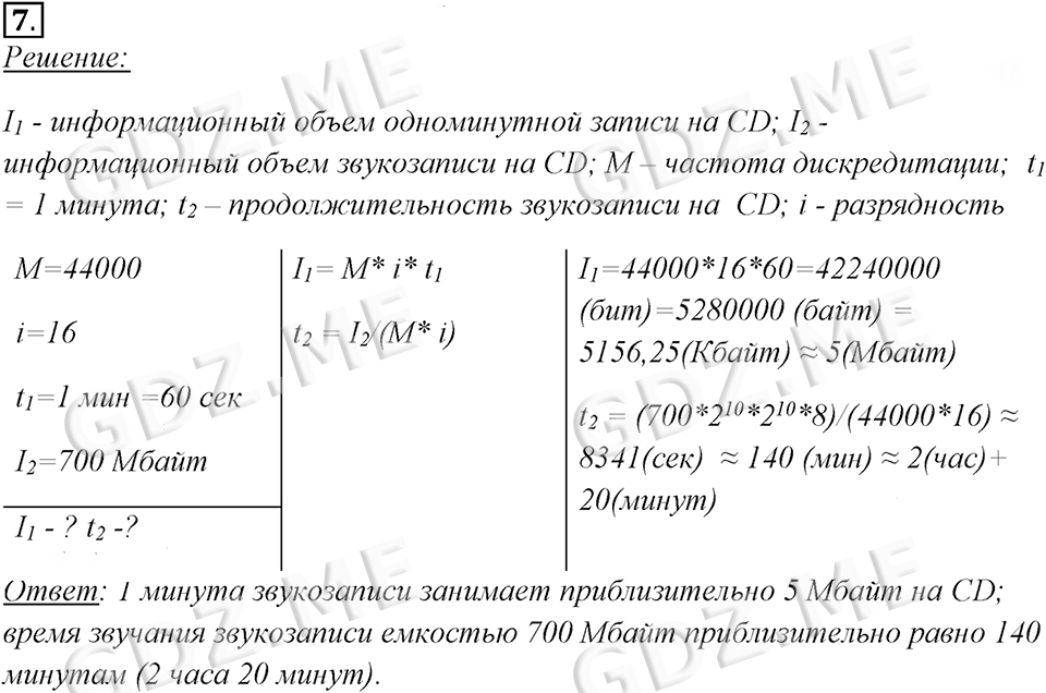 Подробный вариант решения из решебника (ГДЗ): Задание номер 7 (§5.1. Технология мультимедиа. Cтраницы 215-220) по предмету Информатика, за 7 класс, авторы учебника Босова.
