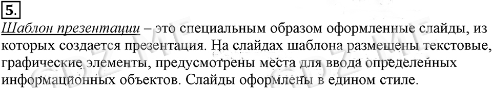 Подробный вариант решения из решебника (ГДЗ): Задание номер 5 (§5.2. Компьютерные презентации. Cтраницы 221-224) по предмету Информатика, за 7 класс, авторы учебника Босова.